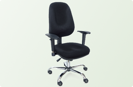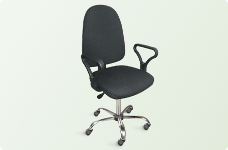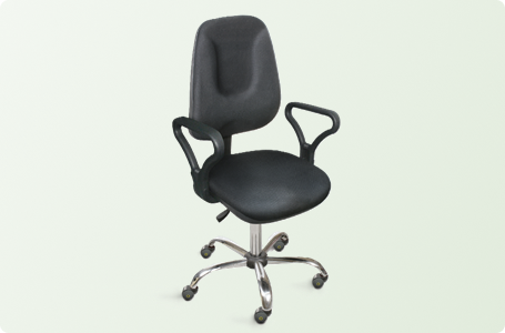 Antystatyczne, tapicerowane krzesło o standardowym kształcie siedziska i oparcia.