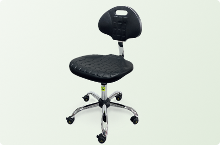 Antystatyczne, niepylące krzesło tapicerowane przewodzącą skórą syntetyczną.