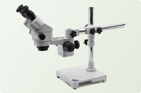 Mikroskop stereoskopowy wyposażony w głowicę binokularową.