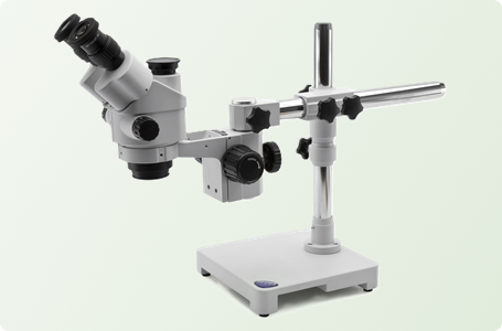 Mikroskop stereoskopowy wyposażony w głowicę trinokularową.