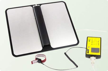 Niewielki i prosty w obsłudze tester opasek nadgarstkowych i obuwia ESD do użytku mobilnego lub montażu na ścianie.