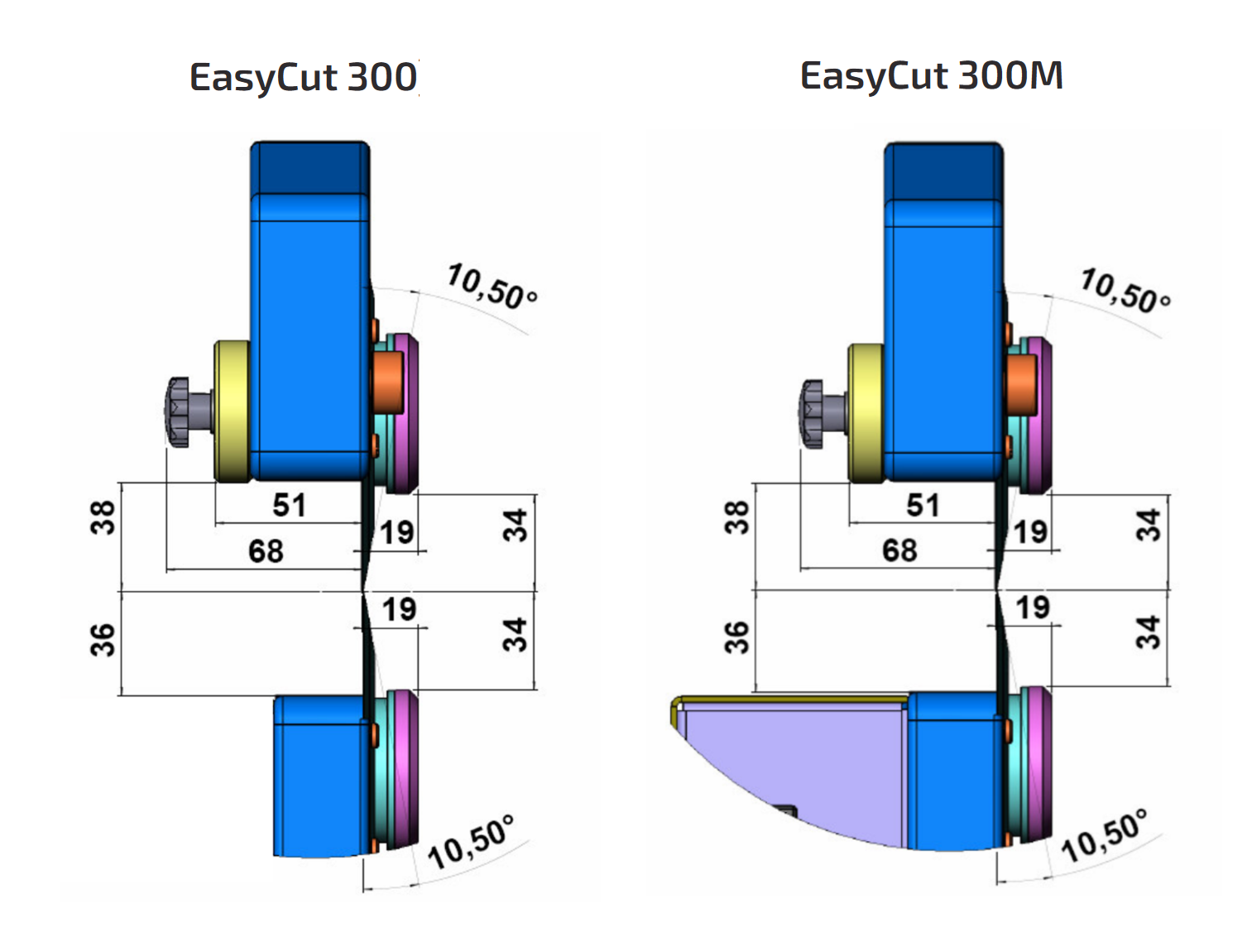 Urządzenie do separacji płytek z paneli w wersji manualnej (model EasyCut 300) oraz z dwustopniowym napędem dolnego ostrza (model EasyCut 300M).
